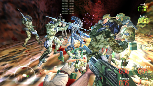 To use, simply open the bot loader, then open AVP in debug mode. At the main menu, press the HOME key. Now you can spawn any bot you want in any level. It will force-load all bots when you load a map. This does not work in multiplayer mode. Made by UberFoX. Released with permission.