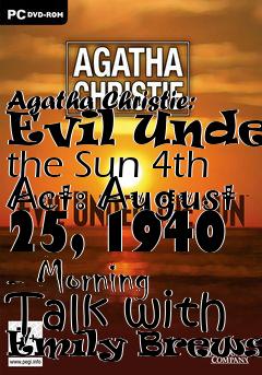 download Agatha Christie: Evil Under the Sun 4th Act: August 25, 1940 - Morning Talk with Emily Brewster save file, free download 4th Act: August 25, 1940 - Morning Talk with Emily Brewster for Agatha Christie: Evil Under the Sun, download saved game file for Agatha Christie: Evil Under the Sun 4th Act: August 25, 1940 - Morning Talk with Emily Brewster level, download free 4th Act: August 25, 1940 - Morning Talk with Emily Brewster level save file for Agatha Christie: Evil Under the Sun, saves profile for Agatha Christie: Evil Under the Sun 4th Act: August 25, 1940 - Morning Talk with Emily Brewster